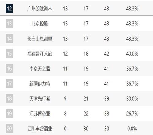 至于后面的新疆、天津和江蘇都是連敗,按照現(xiàn)在的狀態(tài)看不到什么可能性了。四川已經(jīng)30連敗了。