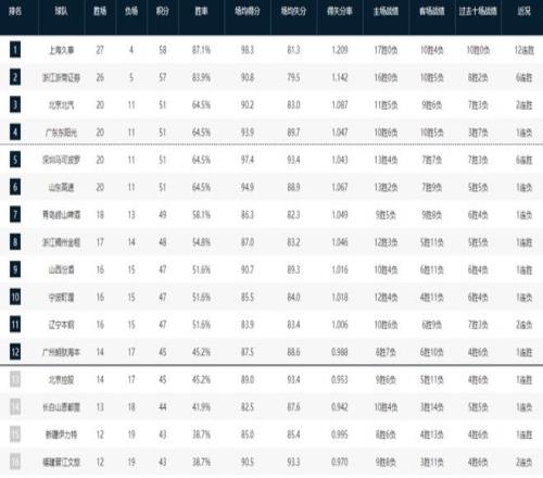 CBA最新排名出爐!北京殺進(jìn)前三,遼寧跌入谷底,黑馬逼停廣東