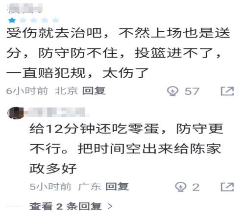 看到杜潤旺攻防兩端再一次毫無貢獻(xiàn),賽后廣東球迷也是毫不留情的給阿旺打了低分,并喊話杜潤旺:受傷就去治吧,不然上場也是送分,防守防不住,投籃進(jìn)不了,一直賠犯規(guī),太傷了;把時(shí)間空出來給陳家政多好。