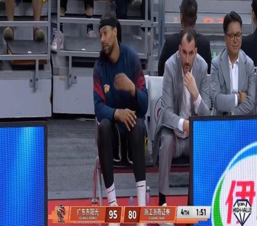 廣東先發(fā)照舊,后場(chǎng)徐杰陳家政薩姆納,前場(chǎng)張皓嘉薩林杰,開(kāi)局陳家政、張皓嘉左右底角連進(jìn)2記三分,塔克靠個(gè)人能力突破造2+1,家政光速吃下2犯,8分15秒薩林杰飚進(jìn)弧頂三分2回合連得5分,廣東打出11-3夢(mèng)幻開(kāi)局。