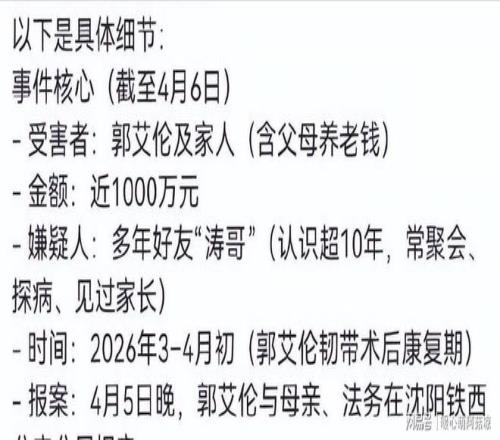 “郭艾倫遭詐騙,涉案金額接近千萬”。
