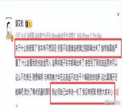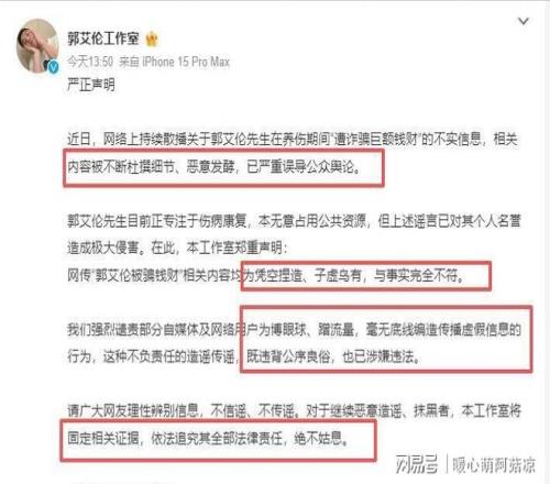 網(wǎng)傳“郭艾倫被詐騙近千萬”等內(nèi)容“均為憑空捏造、子虛烏有”;