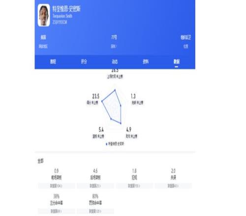 進(jìn)攻端,他能消化大量球權(quán),場(chǎng)均16.6次出手,且效率穩(wěn)定,三分命中率38.1%,投籃命中率為44.7%。防守端,他侵略性十足,場(chǎng)均1.3次搶斷;也有積極的籃板保護(hù)意識(shí),場(chǎng)均5.4個(gè)籃板。