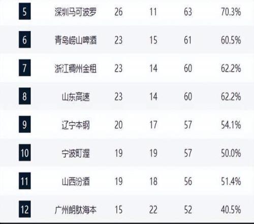 遼寧隊20勝17負,排名第九,基本無緣前八。寧波隊18勝18負,跌至第十,季后賽前景黯淡。山西隊19勝18負位列第十一。