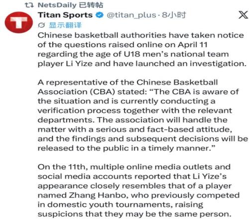 這不,就連籃網(wǎng)媒體NetsDaily也轉(zhuǎn)發(fā)了這次改年齡的報(bào)道,只能說(shuō)這次中國(guó)籃球丟人丟大了。