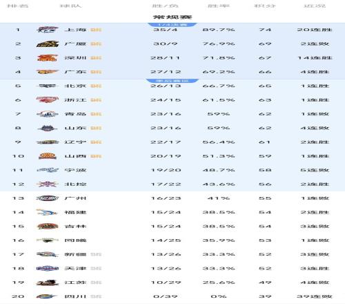 目前,上海隊(duì)、廣廈隊(duì)、北京隊(duì)、廣東隊(duì)、深圳隊(duì)、青島隊(duì)、浙江隊(duì)、山東隊(duì)、遼寧隊(duì)、山西隊(duì)已經(jīng)提前晉級(jí)季后賽,還剩下2個(gè)名額等待產(chǎn)生。此外,上海隊(duì)、廣廈隊(duì)提前鎖定積分榜前四,直通季后賽八強(qiáng)。