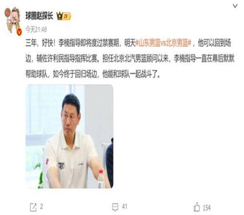 結(jié)束3年禁賽!李楠回歸賽場繼續(xù)輔佐許利民,隨時等待“篡位”