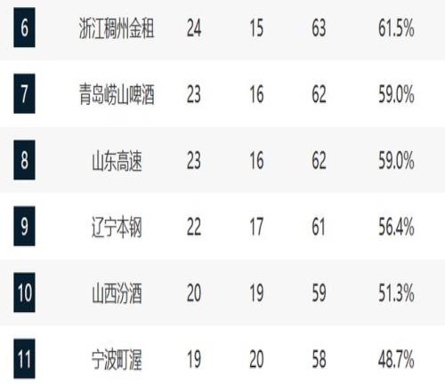 浙江、青島、山東和遼寧分別在6-9。浙江領(lǐng)先青島和山東1個勝場,而現(xiàn)在山東已經(jīng)四連敗了,他們的排名持續(xù)下跌。遼寧則緊咬山東和青島。后續(xù)這幾支球隊也有可能出現(xiàn)位置上的起伏。因為青島和山東最近的狀態(tài)非常不好,遼寧還有可能沖擊前八的機(jī)會。