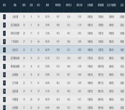 北京隊本賽季至今取得26勝13負位列聯(lián)盟第五,落后于上海隊(35-4)、衛(wèi)冕冠軍廣廈隊(30-9)、深圳隊(28-11)和廣東隊(27-12)。