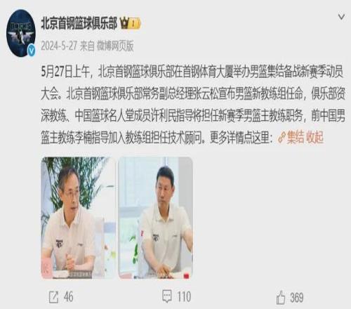 2024年,北京隊聘請李楠擔任球隊技術顧問,本來一直只能在幕后工作,解禁之后就能出現(xiàn)在臺前更好輔佐許利民,甚至有朝一日重新拿起教鞭,畢竟履歷豐富而且才51歲。