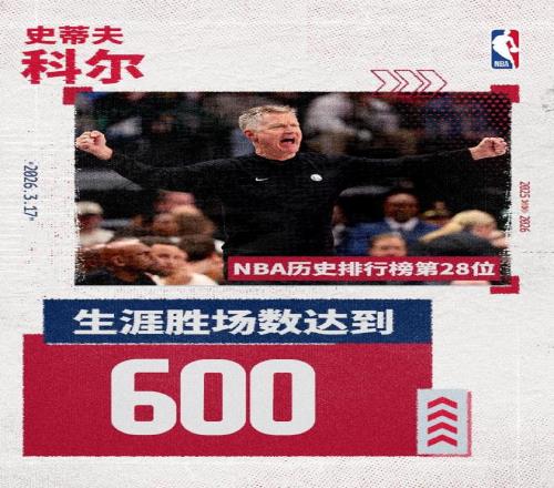如今科爾迎來執(zhí)教600勝里程碑,且均是執(zhí)教勇士取得,他成為NBA歷史第28位執(zhí)教達到600勝的主教練。