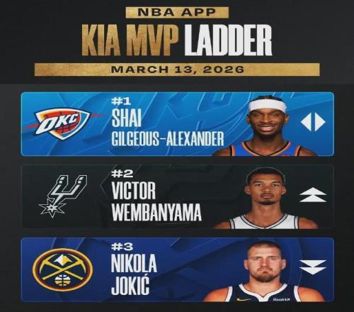 NBA官網(wǎng)公布的最新一期MVP排行榜顯示,亞歷山大、文班亞馬和約基奇分列前三,東契奇第四、坎寧安第五、米切爾第六、杰倫布朗第七、愛德華茲第八、倫納德第九和杰倫-約翰遜第十。