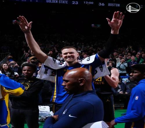 凱爾特人主場(chǎng)播放視頻致敬前總冠軍成員波爾津吉斯,主場(chǎng)球迷熱烈歡迎致意。