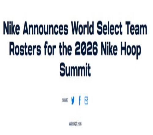 北京時(shí)間3月27日,耐克籃球正式公布了2026年耐克籃球峰會(huì)國(guó)際隊(duì)陣容。在第27屆耐克籃球峰會(huì)上,全球頂尖青年籃...