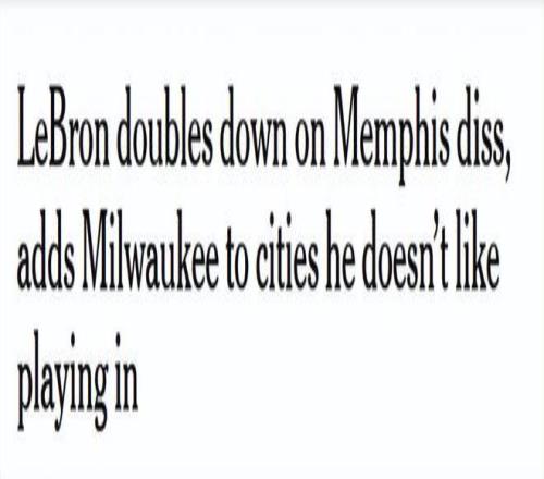“隨便一個(gè)周二在密爾沃基,”詹姆斯在節(jié)目中說(shuō)道,“41歲了還要住在該死的凱悅酒店。你覺(jué)得我想干這事兒?隨便一個(gè)周四在孟菲斯?我又不是NBA里第一個(gè)這么說(shuō)的人。我們都覺(jué)得,‘你們?cè)摪岬胤搅耍岬郊{什維爾去?!莾河蟹兜卤ご髮W(xué),有納斯卡賽車,有球館,他們不也有一支冰球隊(duì)嗎?”