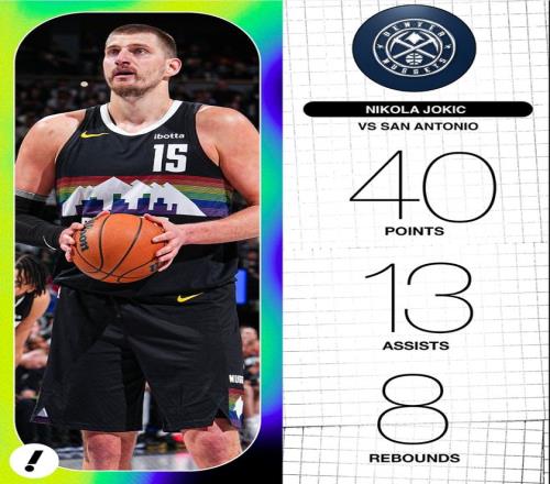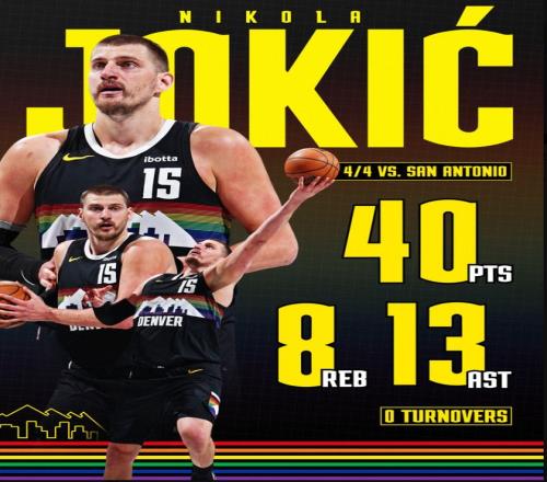 約基奇此役成為NBA歷史上首位40分+10助攻+0失誤的中鋒,終場前9秒的決勝拋投,與終場前3秒的兩罰全中都價值千金。