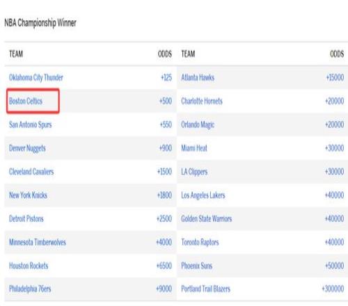 最關(guān)鍵的一點(diǎn),雖然綠凱的戰(zhàn)績(jī)只是聯(lián)盟第四的存在,可最新的奪冠賠率上綠凱已經(jīng)超過(guò)了馬刺、掘金、活塞等球隊(duì)排在雷霆之后,雷霆+125,綠凱+500。