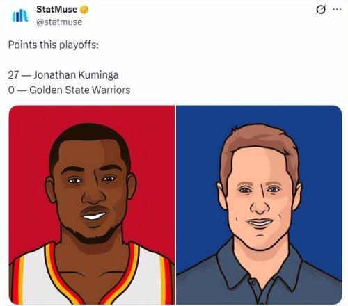 美媒StatMuse特意發(fā)推調(diào)侃:“今年季后賽庫明加已經(jīng)得到27分,勇士0分。”季后賽庫明加的發(fā)揮越出色,相信勇士管理層和教練組就越扎心。