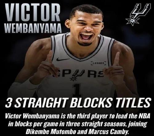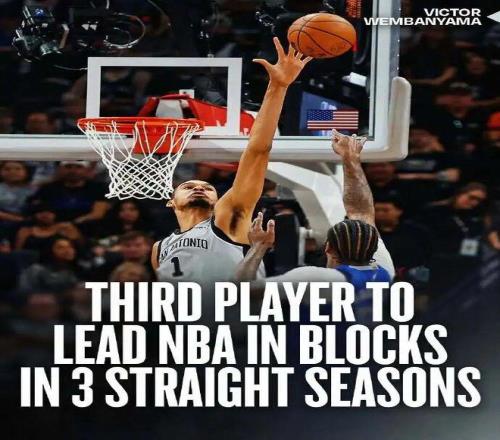 如無意外,文班會(huì)超越穆大叔的連續(xù)5年蓋帽王,最后成為聯(lián)盟歷史的蓋帽王。