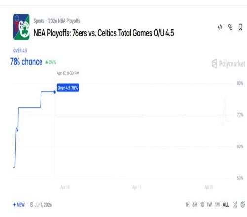 根據數(shù)據媒體的預測,綠凱五場淘汰費城晉級的概率已經高達78%,換言之有恩比德復出綠凱也絲毫不懼。
