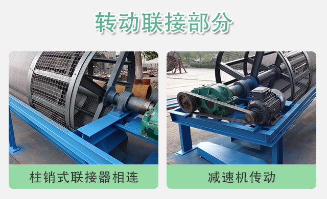該部分均采用組合式篩網,其由傳動輪通過聯軸器,傳至主軸,該篩網安裝于焊接在主軸的滾籠上。物料從進料端進入,經過滾籠中不斷回轉,分級,從下方出料口均勻流出,其有效的將成品與返料分離,從而降低勞動強度。