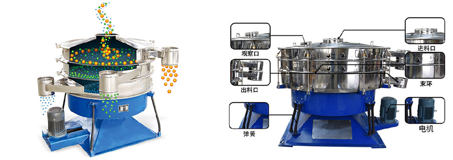 我們的進(jìn)料口改變了原來依附在后門上的設(shè)計(jì).增加了分料板結(jié)構(gòu).使后門的結(jié)構(gòu)簡單,重量輕.進(jìn)料也越發(fā)簡單快捷.使分料更有效均勻.后門的重量減輕,讓進(jìn)料一端的搖擺運(yùn)動(dòng)更有力.使得投入篩面的物料更快速的分散篩分.