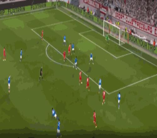 第19分鐘,格里福開出任意球,金特爾頭槌破門,弗賴堡1-0