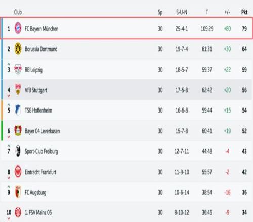 由哈里·凱恩、奧利塞和夏季新援路易斯·迪亞斯組成的三叉戟成為了全德甲的噩夢,三人聯(lián)手包辦了其中的59粒進(jìn)球。與此同時(shí),防守端也表現(xiàn)穩(wěn)健,至今僅丟29球。如果拜仁在剩下的比賽中全勝,他們將追平海因克斯在2013年創(chuàng)下的91分單賽季積分紀(jì)錄。