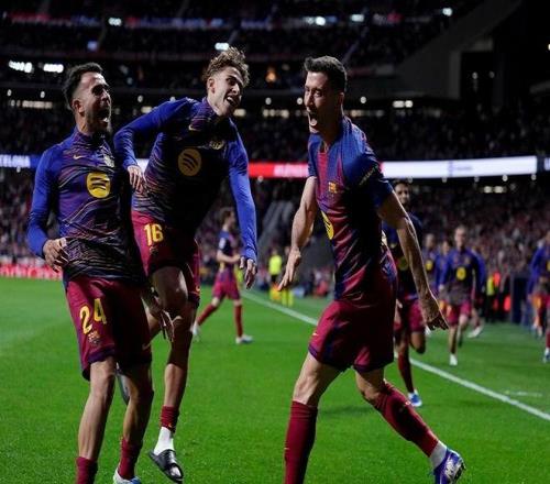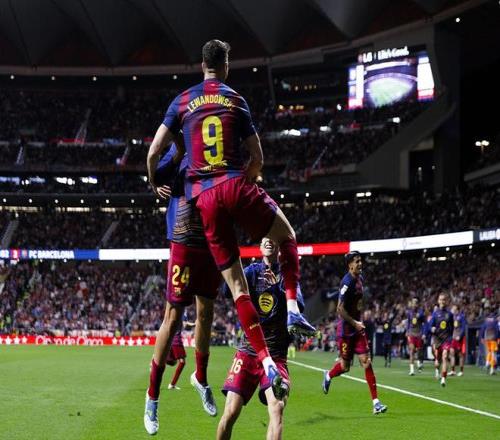 而隨后登場的巴薩,也沒有浪費皇馬送出的大禮。盡管巴薩在客場同樣落后馬競,但他們卻再次上演逆轉(zhuǎn)好戲,丟球后僅3分鐘便由拉什福德扳平。第87分鐘,萊萬有些幸運的破門幫助巴薩帶走3分。此役獲勝后,巴薩各項賽事4連勝。