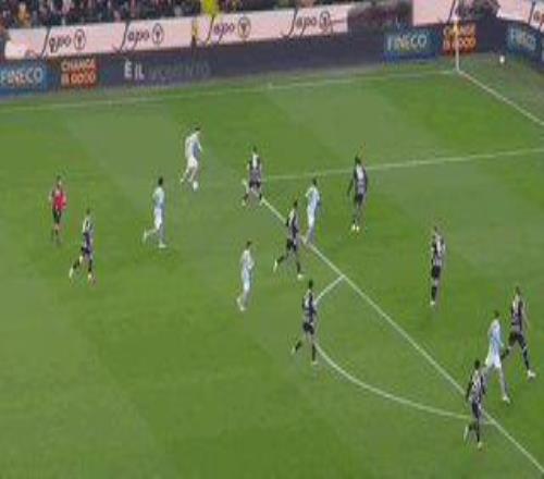 烏迪內(nèi)斯在組隊方面一直堅持身體路線,該隊球員普遍身材強壯,對抗和跑動能力超強。因此,當(dāng)開場后烏迪內(nèi)斯選擇收縮防守,尤文如同面對一堵高墻。直到接近15分鐘時,尤文才第一次真正威脅到球門。