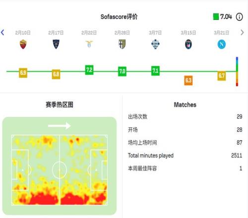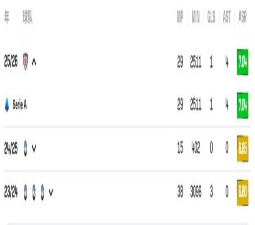 這次租借改變了他的職業(yè)生涯軌跡。在卡利亞里,帕萊斯特拉迅速坐穩(wěn)主力右后衛(wèi)位置。他的技術特點非常鮮明,速度快、上下往返能力強,傳中質(zhì)量穩(wěn)定,防守端的位置感也在不斷提升。本賽季他已送出4次助攻,進攻端的貢獻讓他成為意甲最值得關注的年輕邊后衛(wèi)之一。