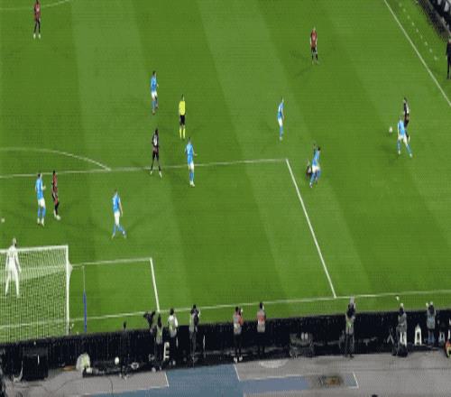 第71分鐘,德布勞內(nèi)開(kāi)出角球,安古伊薩背對(duì)球門(mén)原地側(cè)勾,邁尼昂后退過(guò)程中將球沒(méi)收。