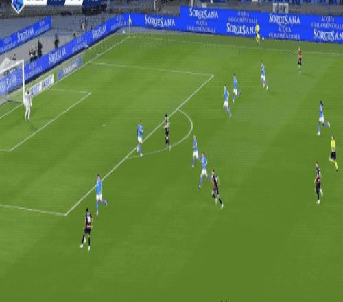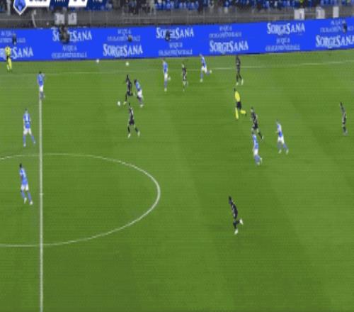 第23分鐘,斯皮納佐拉輕巧晃開(kāi)福法納和巴爾泰薩吉的防守,突入禁區(qū)兜射遠(yuǎn)角,皮球差之毫厘。