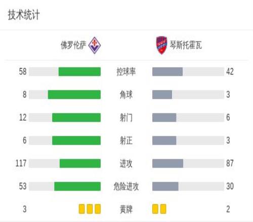 北京時(shí)間3月13日歐洲協(xié)會(huì)聯(lián)賽 1/8決賽首回合,佛羅倫薩對(duì)陣琴斯托霍瓦。下半場布魯內(nèi)斯首開記錄,兩分鐘后恩杜爾世界波扳平比分,補(bǔ)時(shí)階段阿梅亞烏手球送點(diǎn),古德蒙德松點(diǎn)射絕殺。最終比分佛羅倫薩 2-1 琴斯托霍瓦。