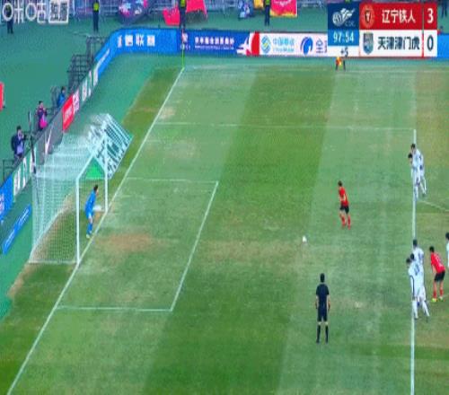 傷停補(bǔ)時(shí)進(jìn)行到第90+8分鐘,王獻(xiàn)鈞禁區(qū)內(nèi)拉拽了田玉達(dá),吃到紅點(diǎn)套餐,邦本宜裕主罰點(diǎn)球,打出一記精彩的勺子點(diǎn)球破門,遼寧鐵人將比分鎖定為3-0!