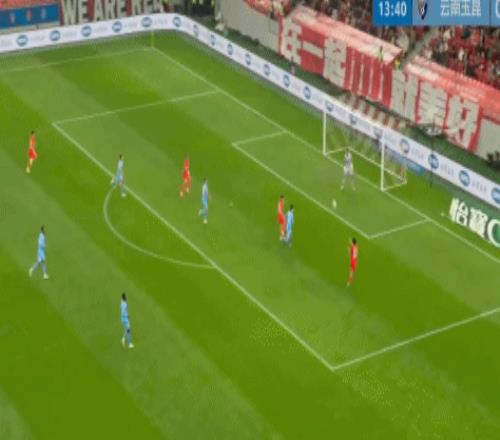 比賽的第14分鐘,楊希禁區(qū)內(nèi)頭球似傳似射,劉祝潤(rùn)鏟射錯(cuò)過(guò)落點(diǎn),萊昂納多門(mén)線補(bǔ)射破門(mén)。