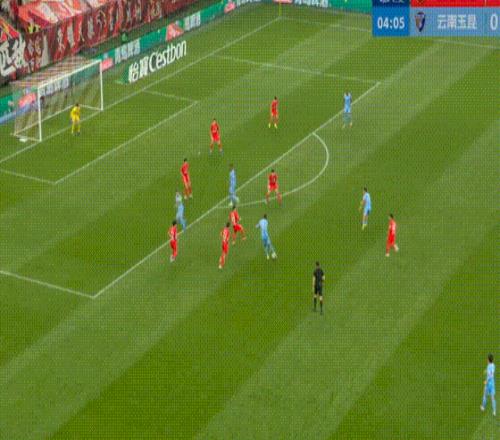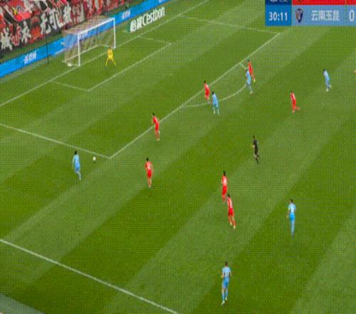 第61分鐘,約尼查角球開到后點,布爾克頭球攻門頂進,云南玉昆隊扳平比分。