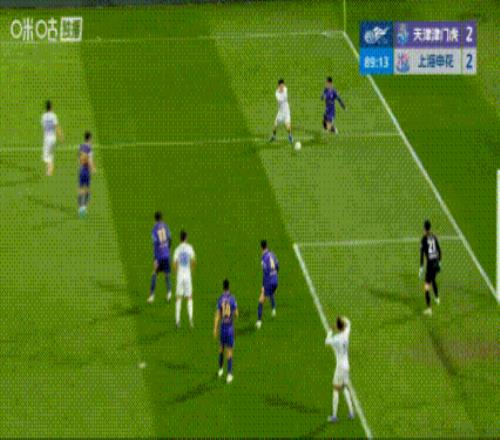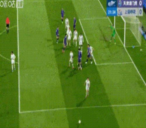 第21分鐘,津門虎獲得角球機會,申花隊解圍出來,哈達斯二次傳中,基萊斯甩頭攻門,申花門將薛慶浩做出神奇撲救,津門虎距離進球還是差了一點運氣。