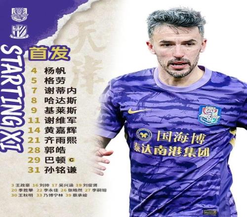 僅僅三輪過后,津門虎的后防線就出現(xiàn)了捉襟見肘的狀況,科爾多瓦、王獻鈞兩名主力中衛(wèi)缺陣,無奈之下,本場對陣申花,津門虎只能被迫重組防線,謝維軍、黃嘉輝、楊帆三人搭檔中衛(wèi),孫銘謙、巴頓出任兩個邊翼衛(wèi),一條本土防線就這樣“應(yīng)運而生”;中場方面,隊長王秋明坐上替補席,哈達斯、豪梅·格勞、郭皓三人首發(fā),謝蒂內(nèi)和基萊斯繼續(xù)組成雙前鋒。隊長袖標則交給了巴頓。
