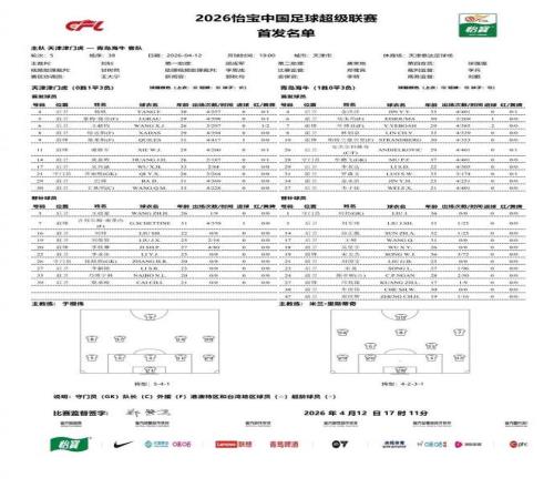 北京時間4月12日19:00,中超第5輪,天津津門虎主場迎戰(zhàn)青島海牛,本場主裁是劉釗,VAR是甘樹然。津門虎替補(bǔ)名單僅10...
