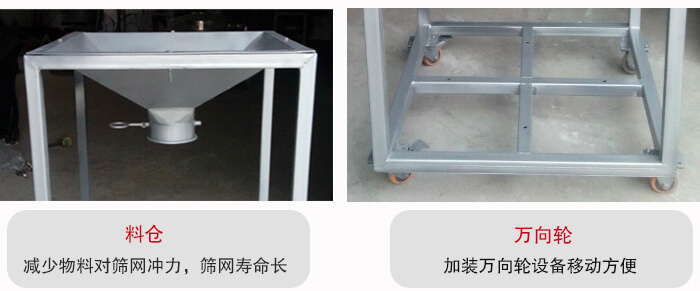 移動(dòng)式振動(dòng)篩又叫振動(dòng)篩料倉(cāng)一體機(jī),底部加裝萬向輪,可360度旋轉(zhuǎn)移動(dòng),主要應(yīng)用于篩分場(chǎng)所不固定的環(huán)境,便于用戶移動(dòng),滿足不同地點(diǎn)的工作需要。通過調(diào)節(jié)料倉(cāng)中的蝶閥從而控制物料進(jìn)入振動(dòng)篩的流量,然后振動(dòng)篩進(jìn)行篩分作業(yè),本品的特點(diǎn)間歇性加料,不用工人不間斷投料節(jié)省人工,蝶閥控制流量大小能提高篩分精度。