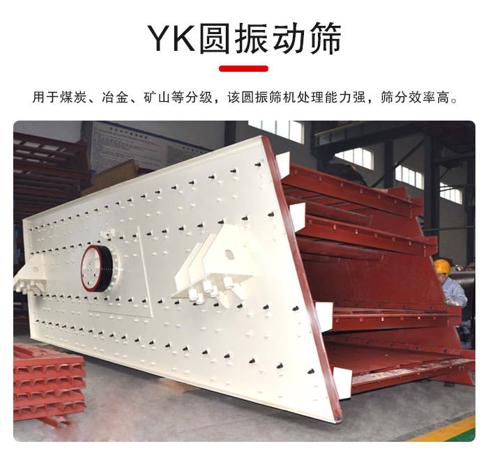 YK圓振動篩是固體物理分級的重要設備篩分效果好,被應用在許多行業,如礦山、建材、能源、選煤、交通、能源、化工等行業的產品分級,